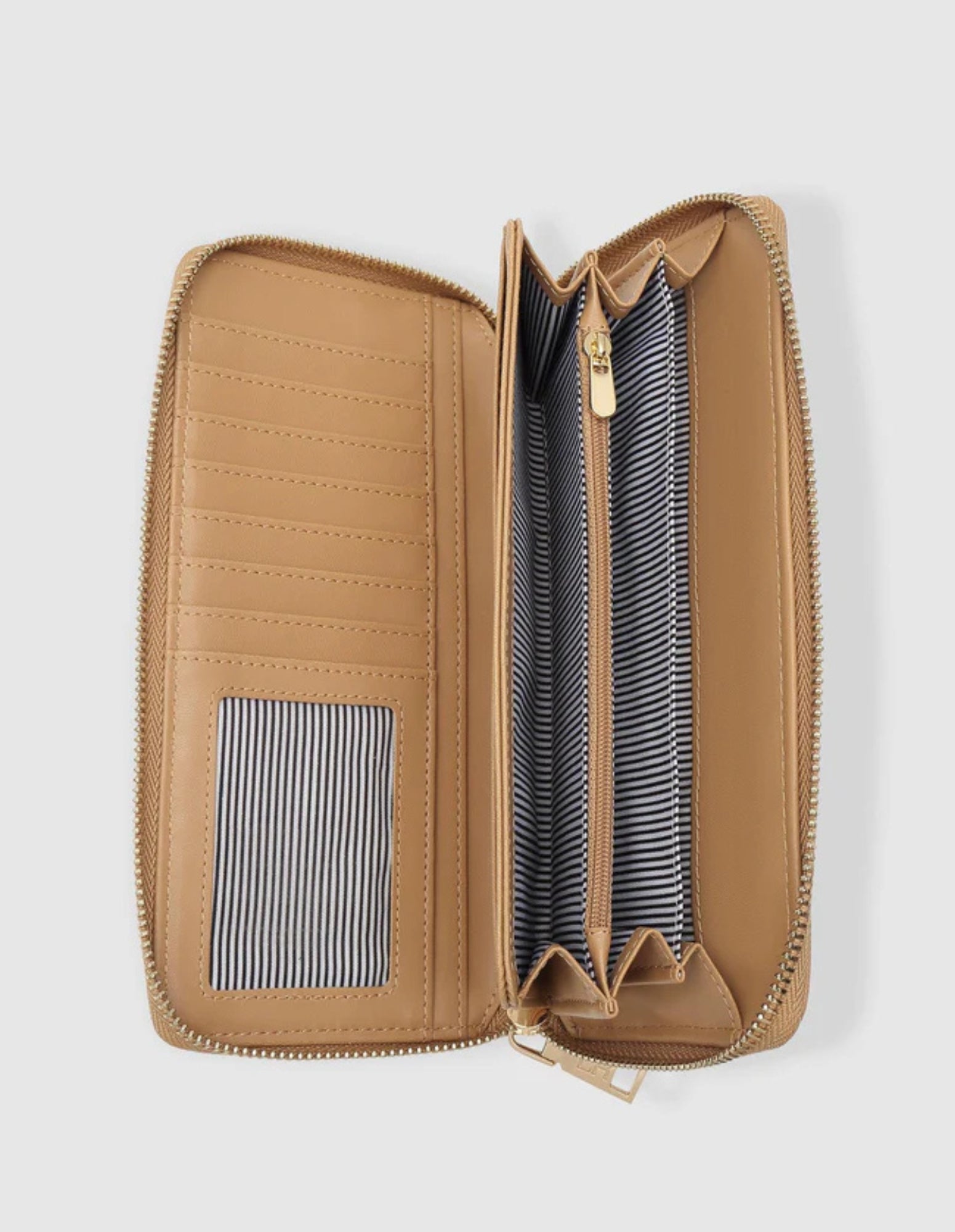 The Louenhide Jessica Camel Wallet is a classic and elegant carryall that is a customer favourite season after season. Sleek and compact with plenty of storage for cards, notes, and coins, the Jessica Camel is the perfect zip around continental wallet for everyday use. Slip easily over your wrist with its detachable wristlet for a clutch option on a night out!