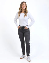 Comfort meets cool in the Sylvia Jogger by Foxwood—a laid-back essential with subtle elevated details. Made from soft, two-way stretch cotton drill in a midweight denim-like finish, these relaxed pants offer movement, structure, and an effortless feel. Featuring an elastic waistband with a soft drawcord and metallic thread, plus functional front and back pockets, the Sylvia Jogger is your all-day, anywhere go-to.